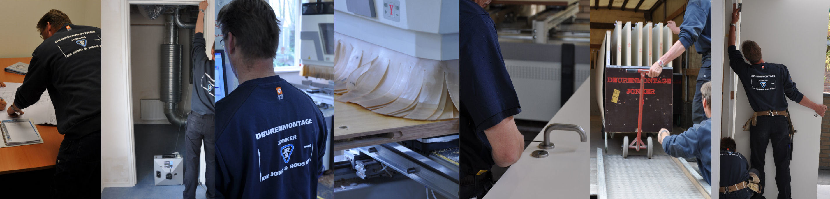 Het hele traject, vanaf het uitwerken van bestekken en tekeningen tot en met het plaatsen van de deuren, wordt door ons verzorgd. Het inmeten, monteren en afhangen wordt gedaan door ervaren vakmensen. Wij zijn hierbij een samenwerkingsverband aangegaan mer Deurenmontage Jonker. Zo heeft u één aanspreekpunt voor een perfecte projectbegeleiding en bent u zeker van een snelle en vakkundige montage.